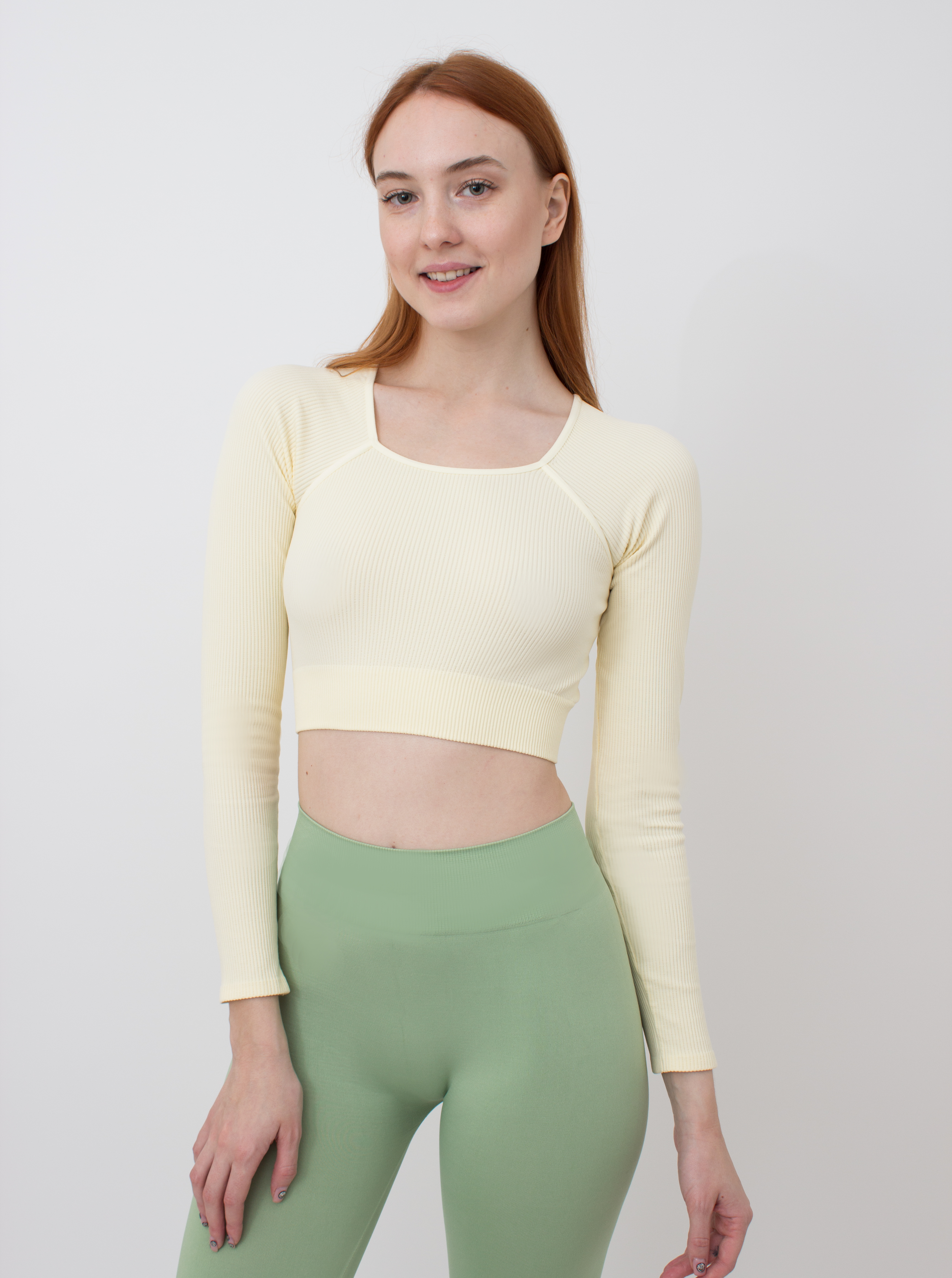 Топ в рубчик з довгим рукавом CROP TOP RIB Giulia vanilla (жовтий)
