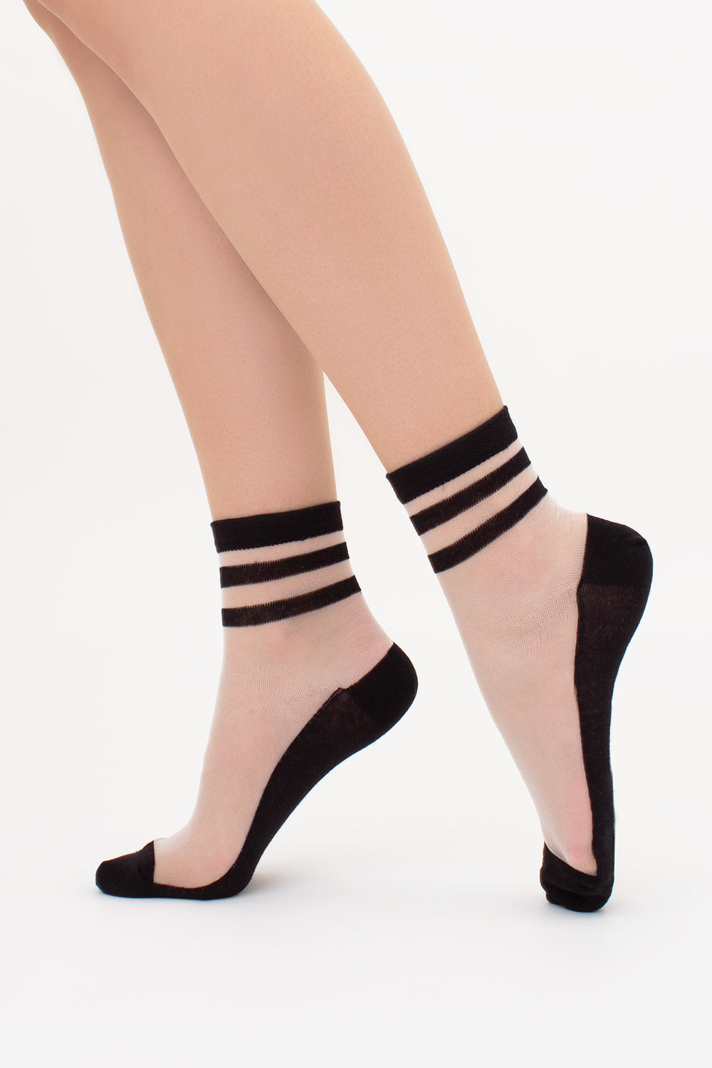 Прозорі вставки з мононитки додають образу легкості та створюють візуальний ефект витонченості, роблячи шкарпетки не лише зручним, а й стильним доповненням до гардеробу.