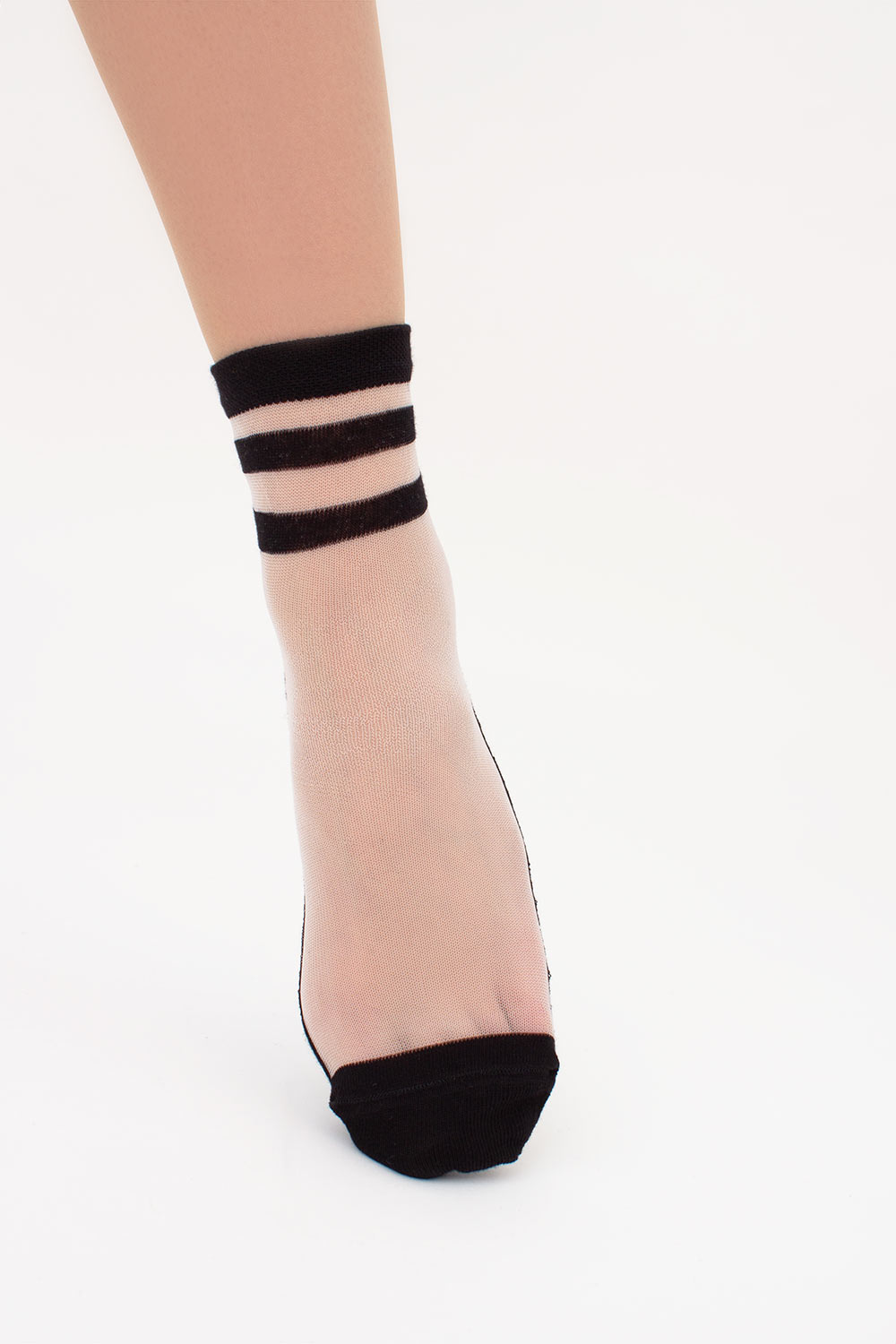 Прозорі жіночі шкарпетки зі смужками WS2 CRISTAL 073 Giulia (black), чорний