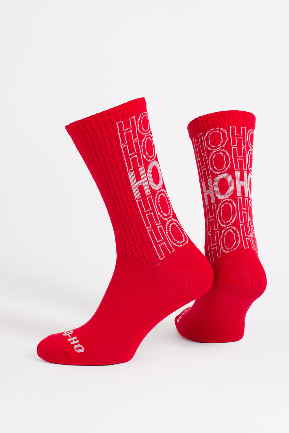 Чоловічі шкарпетки в рубчик MS3 NEW YEAR STRONG 2601 — стильні та затишні шкарпетки зі святковим написом HO-HO-HO-HO на задній частині.