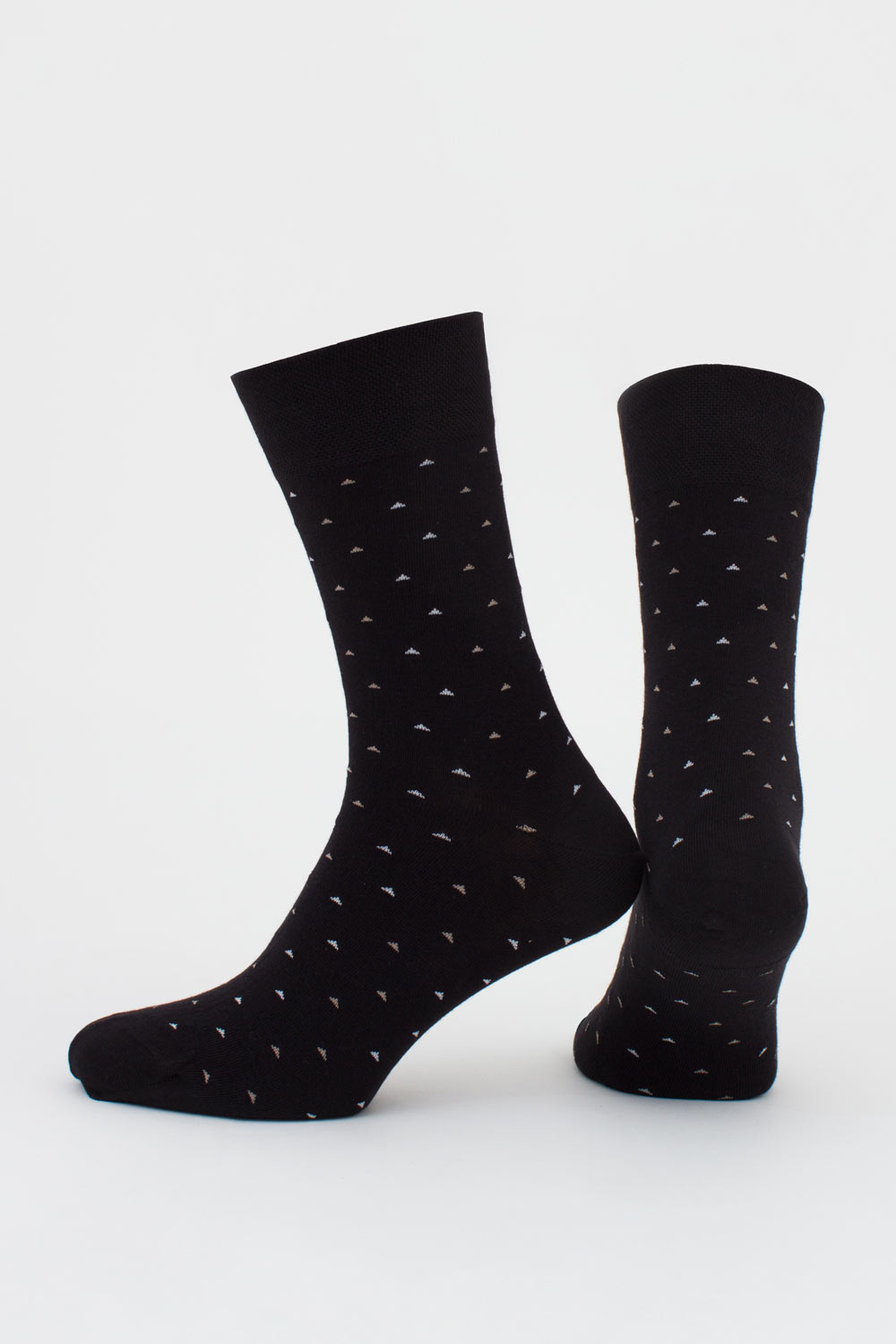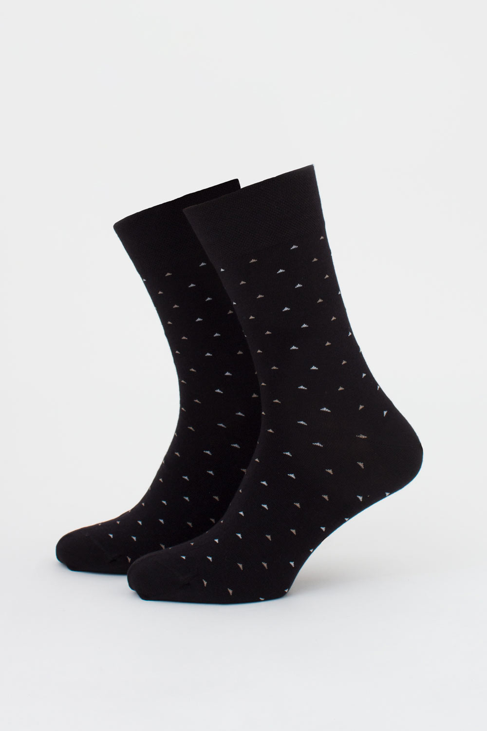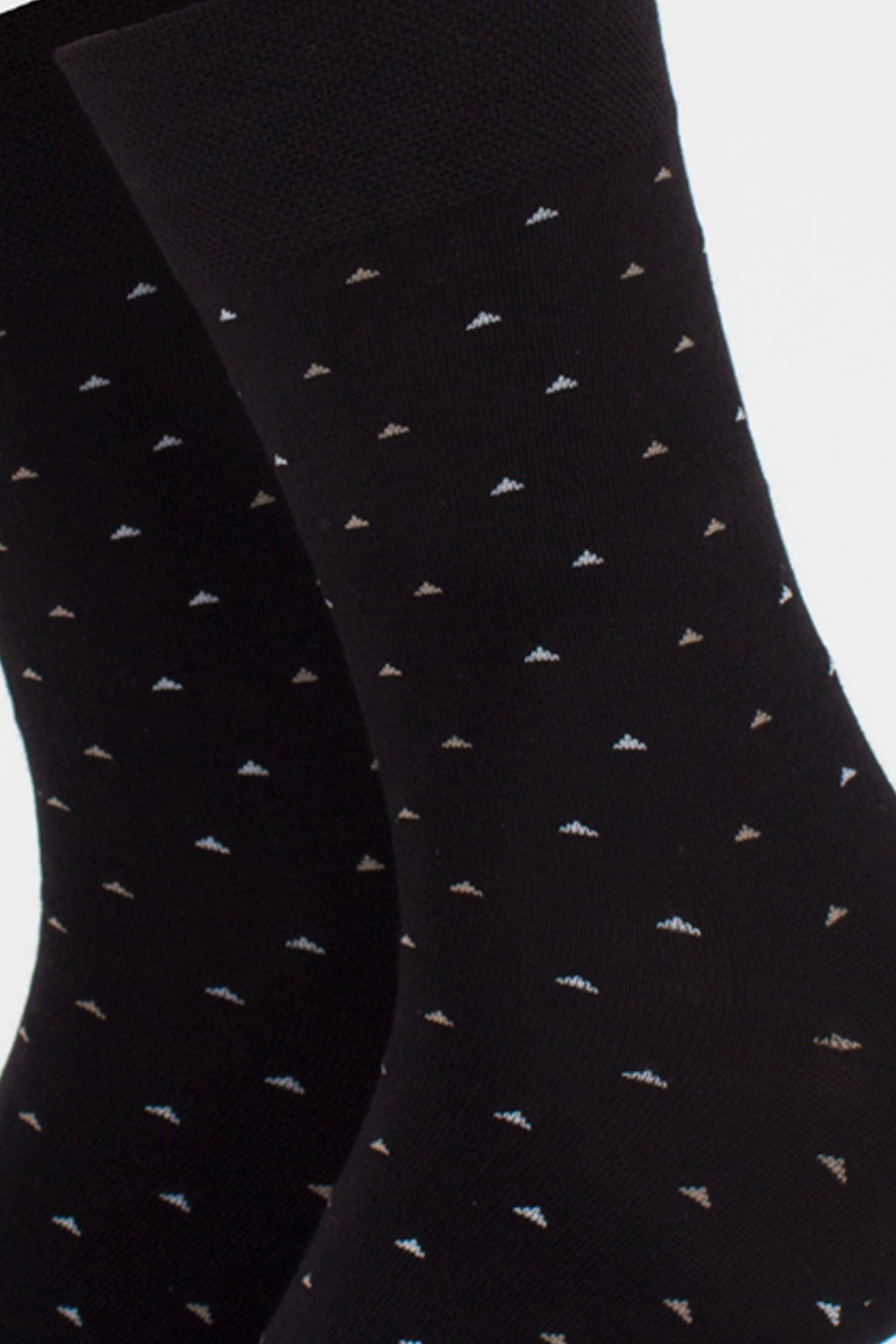 Шкарпетки мають малюнок у вигляді маленьких трикутників, що додає елегантного акценту.