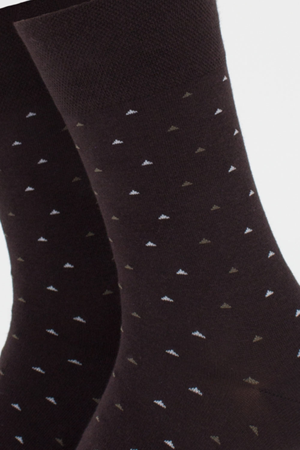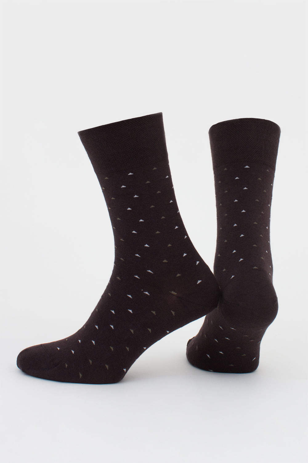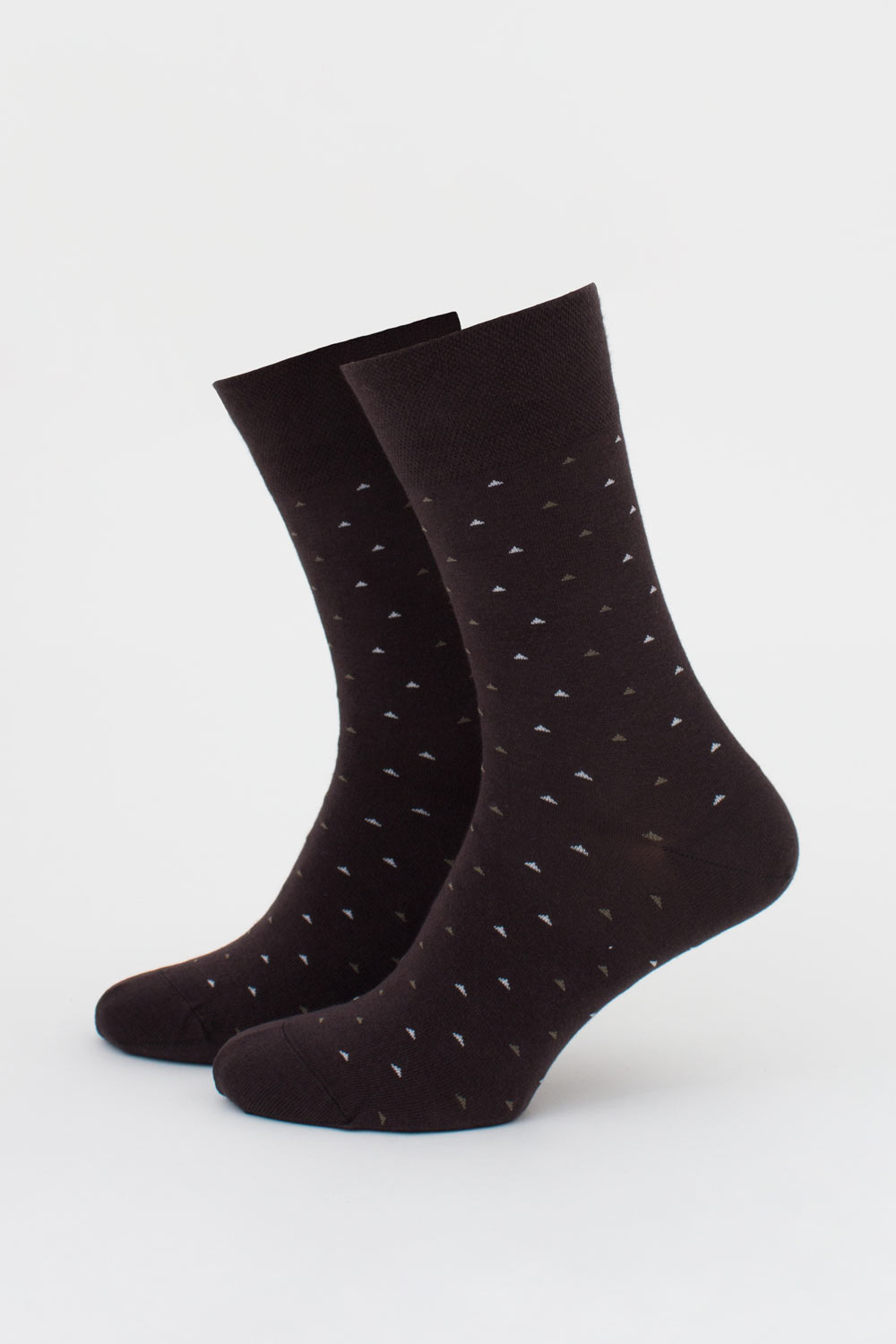 Шкарпетки мають малюнок у вигляді маленьких трикутників, що додає елегантного акценту.