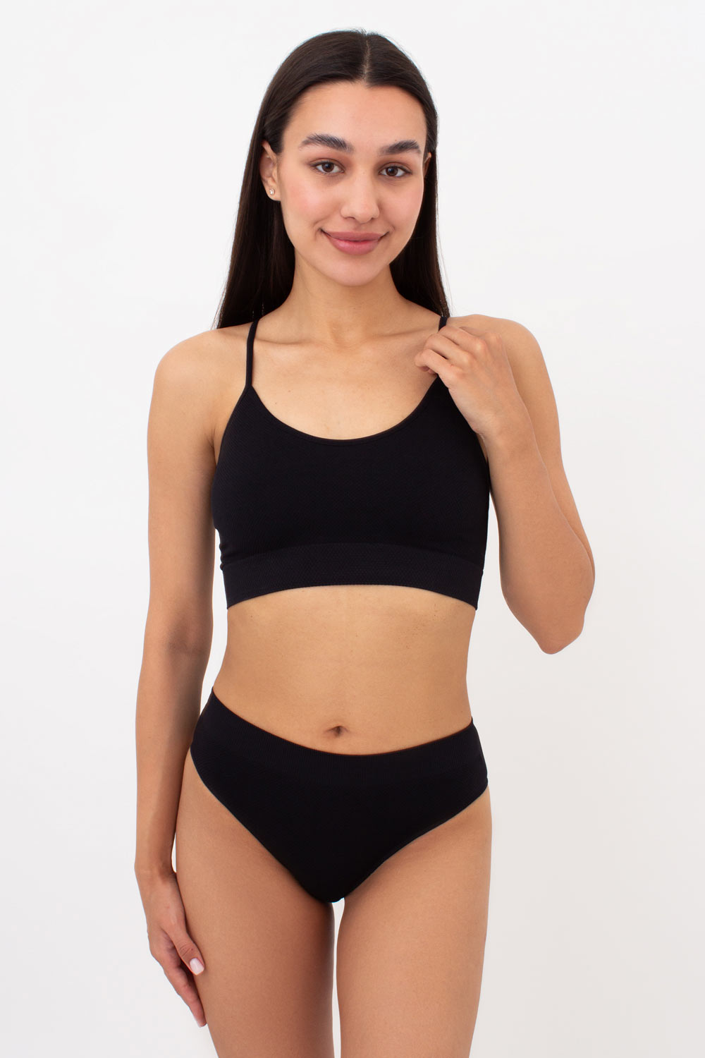Зерниста текстура та резинка в рубчик додають трусикам вишуканої фактури та оптимальної еластичності.