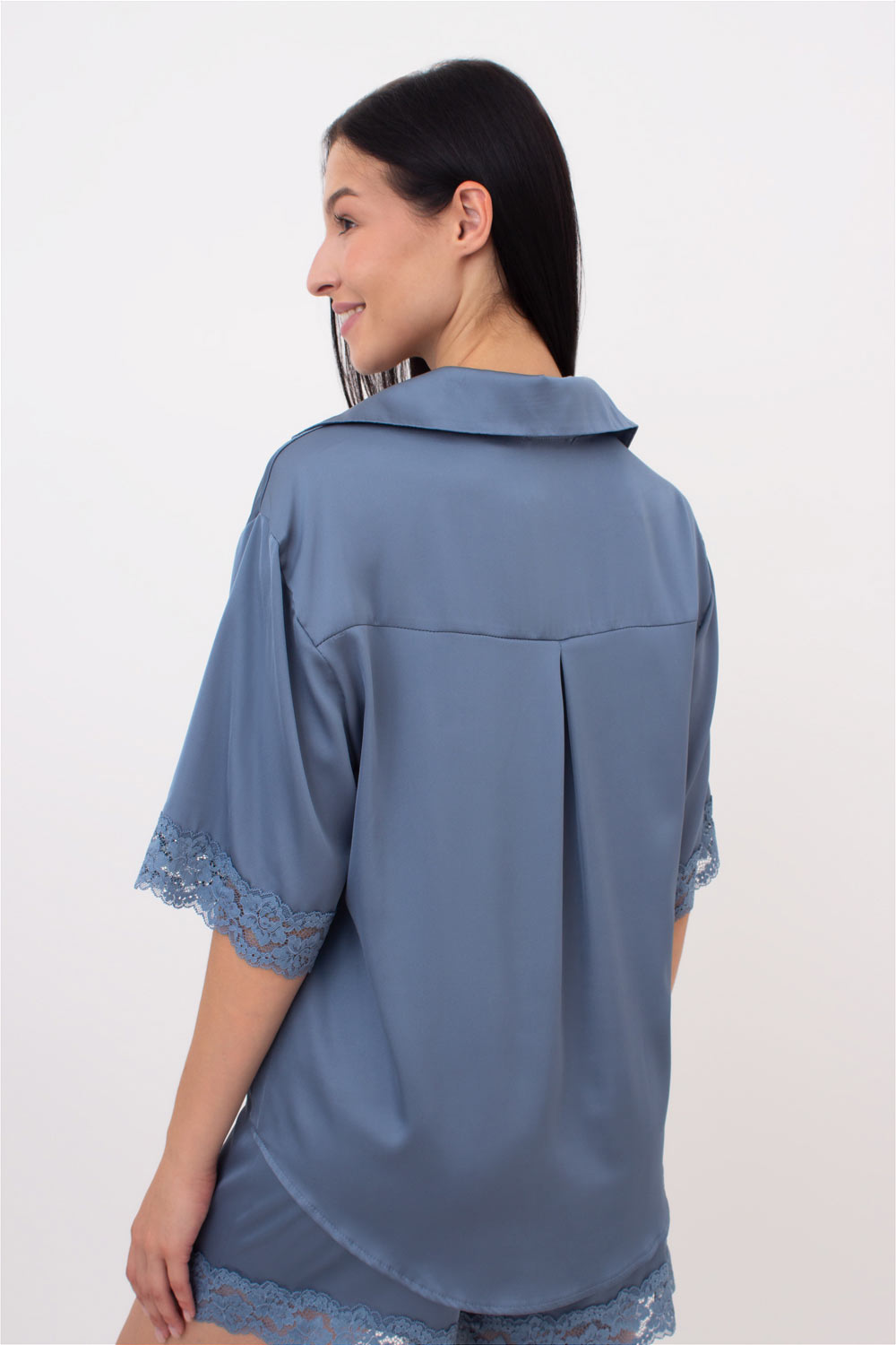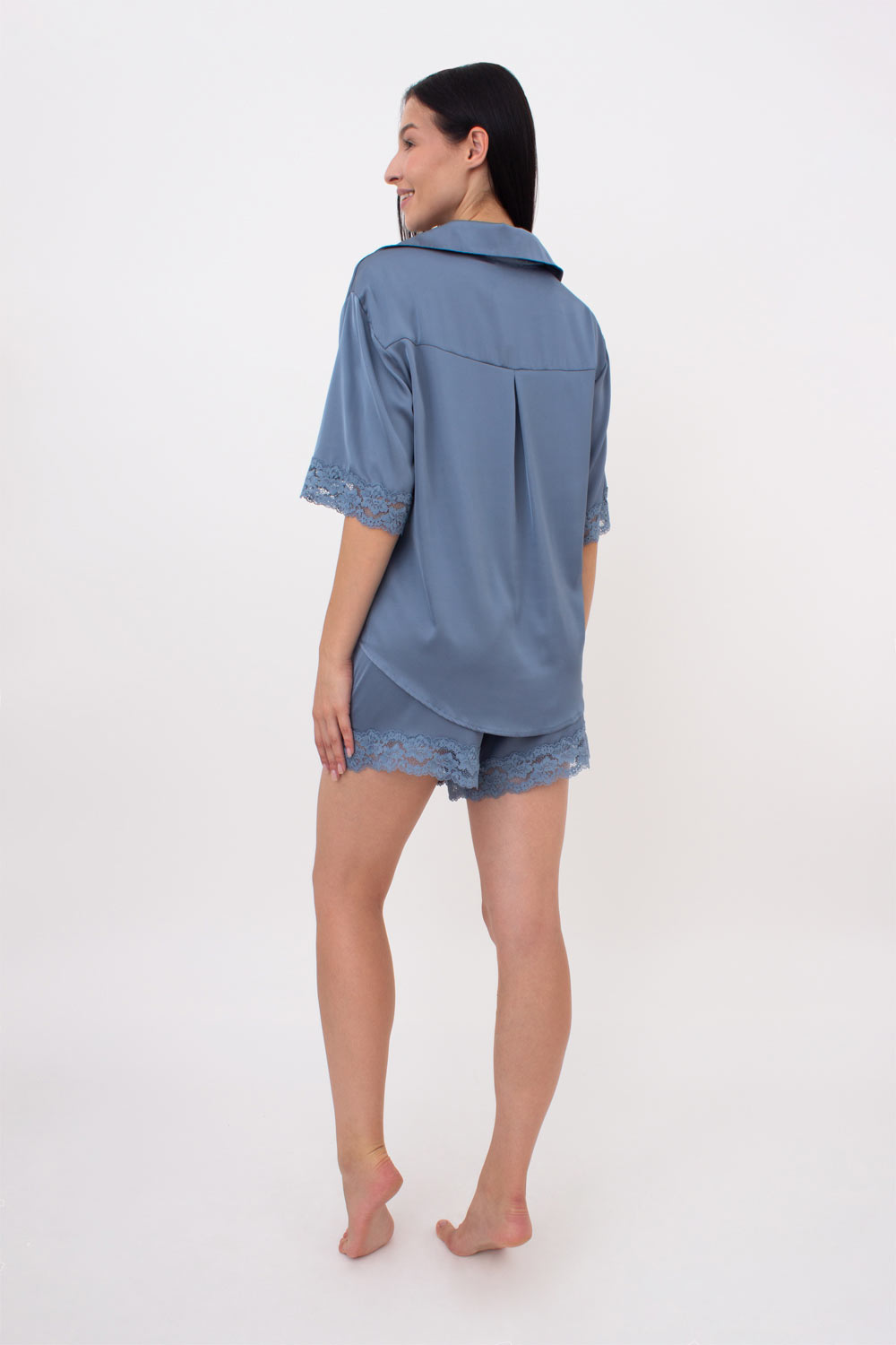 Жіноча піжама шовкова з мереживом HELENA 6602/051 Giulia (smoky blue), блакитний