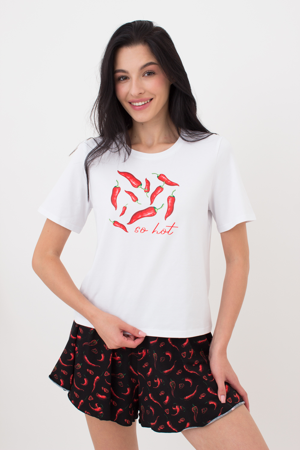 Жіночий комплект футболка та шорти BUNTARKA PRINT 6125/010 Giulia (white/black/peppers), білий/чорний