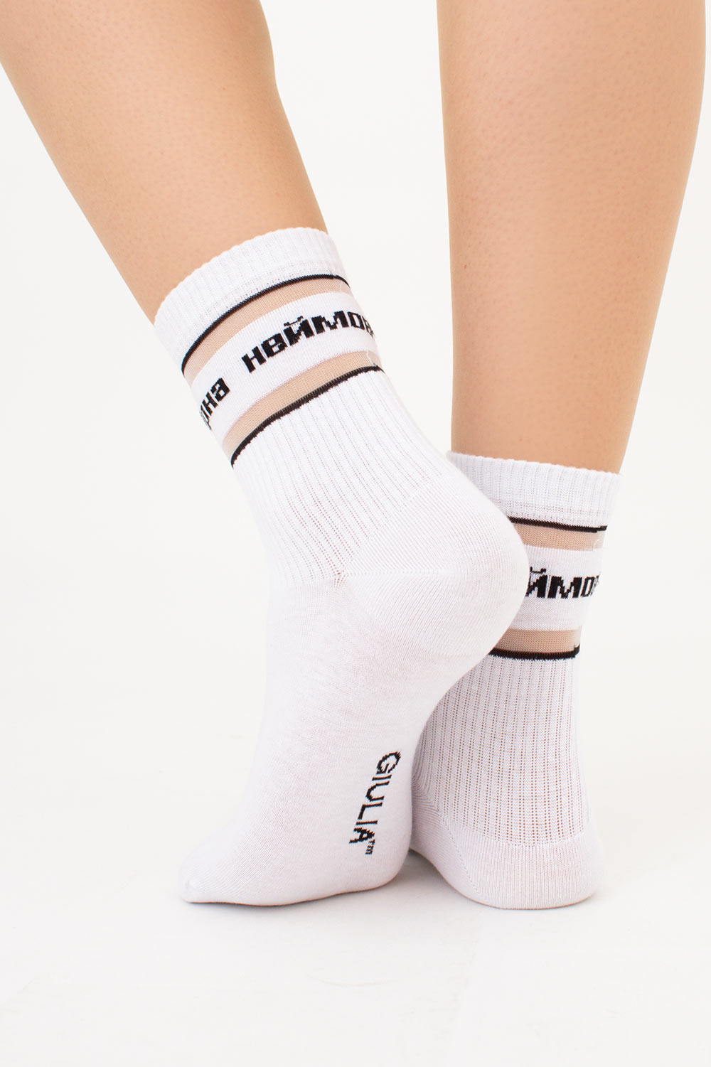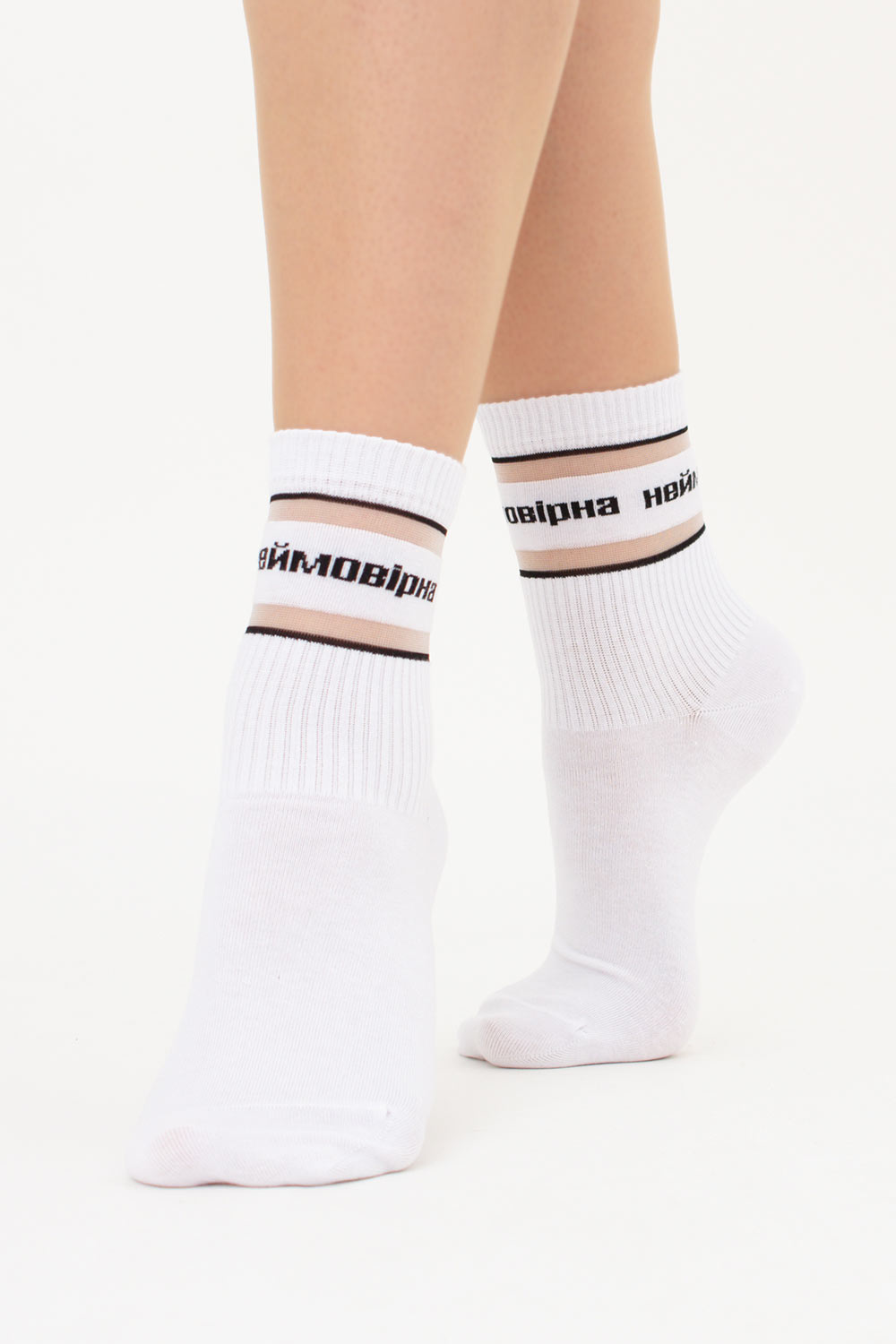 Высокие носки с надписью "Неймовірна" WS3 CRISTAL STRONG 003 Giulia (white), белый