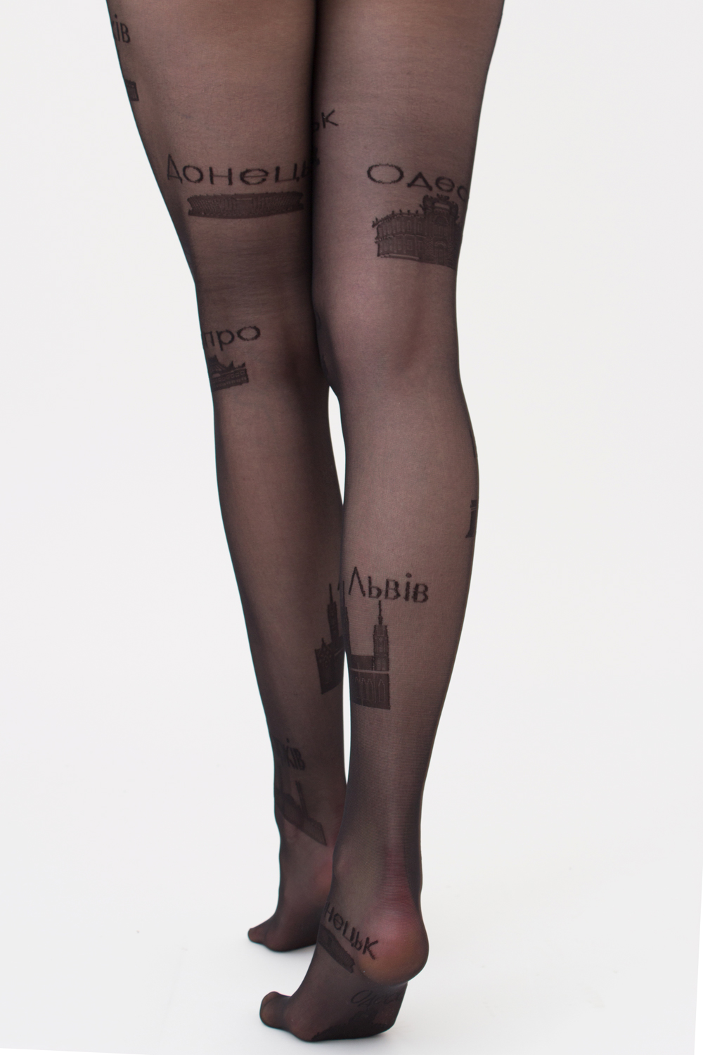 Фантазийные женские колготки с рисунком и надписями городов Украины.