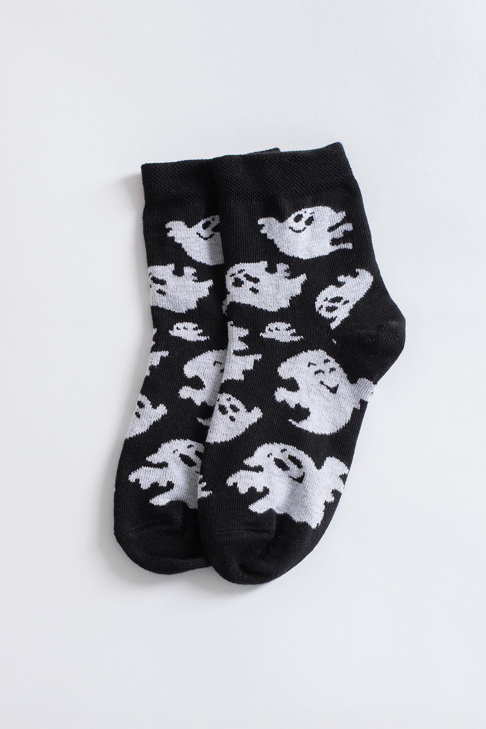 Милые призраки по всей длине носка создают праздничную атмосферу с первого взгляда.