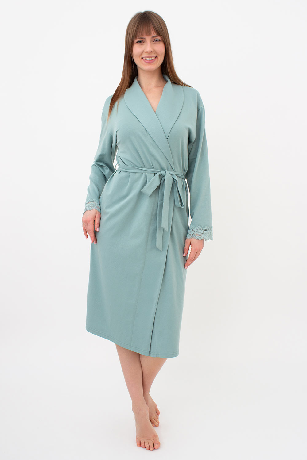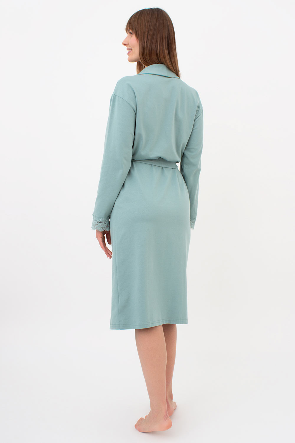 Женский халат на запах с кружевом SEVILLA 7330/011 Giulia (mint), зеленый